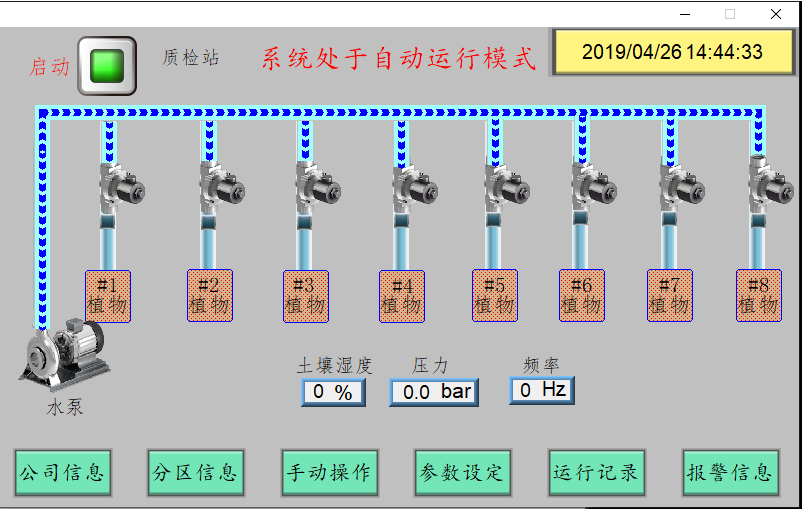 該產(chǎn)品包括控制系統(tǒng)、數(shù)據(jù)采集系統(tǒng)、遠(yuǎn)程監(jiān)控系統(tǒng)。控制系統(tǒng)主要元器件為可編程控制器、觸摸屏、電磁閥、遠(yuǎn)程通信模塊等,主要功能是進(jìn)行自動(dòng)化澆灌并與遠(yuǎn)程服務(wù)器進(jìn)行通信。數(shù)據(jù)采集系統(tǒng)主要元器件為各種環(huán)境參數(shù)的傳感器,遠(yuǎn)程監(jiān)控系統(tǒng)主要元器件為網(wǎng)絡(luò)攝像頭,云平臺(tái)(或者服務(wù)器機(jī)房)等,主要功能是實(shí)時(shí)從控制系統(tǒng)獲取數(shù)據(jù),保存并分析數(shù)據(jù),獲取網(wǎng)絡(luò)攝像頭的視頻畫(huà)面并保存。